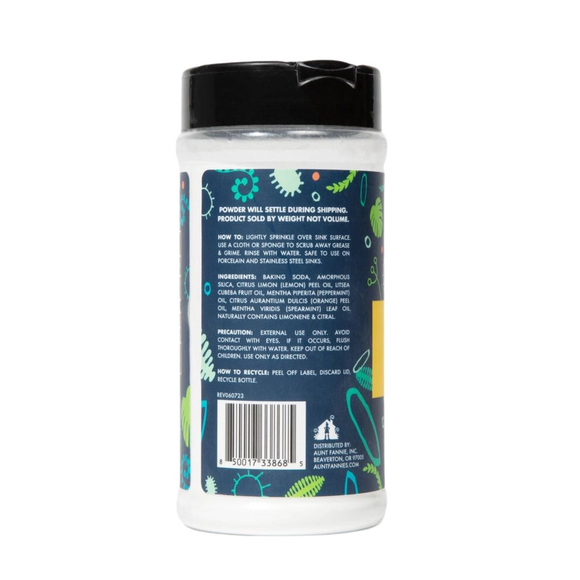 Use: Lightly sprinkle over sink surface. Use a cloth or sponge to scrub away grease & grime. Rinse with water. Safe to use on porcelain and stainless steel.